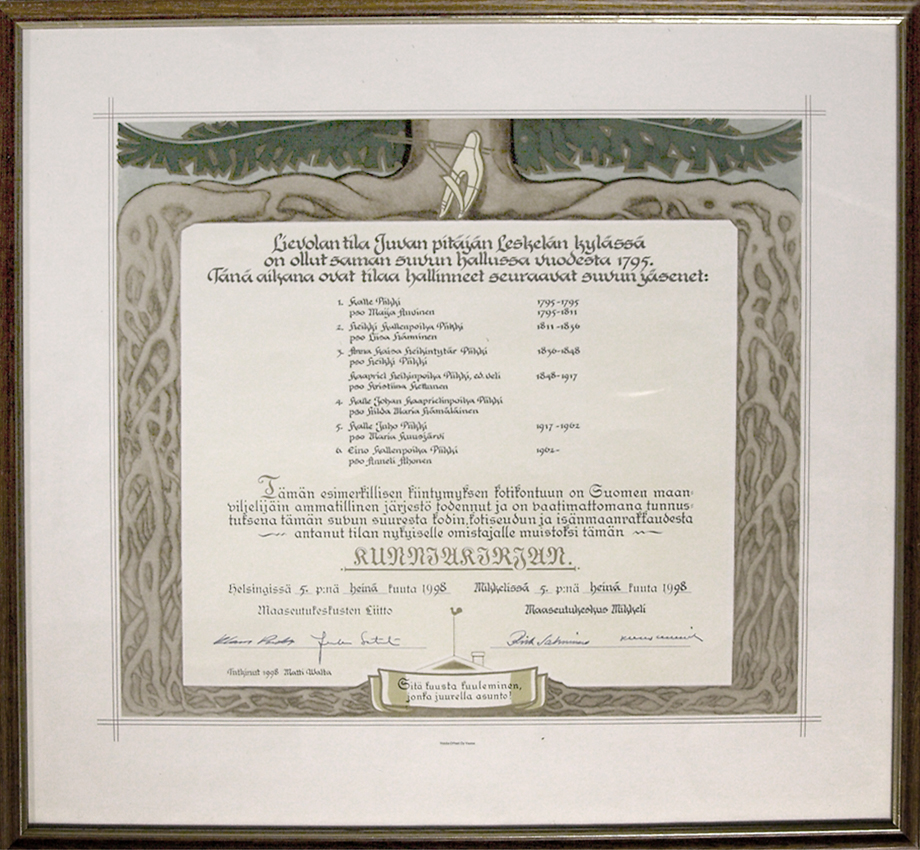 Lievolan tilan sukutaulu Nimismies Antti Piikin nimikirjoitus Rippikirjat Poikola, Piikkilä 1803-1805 Leskelä 2, 1823-1833 Leskelä 2, 1880-1889 Leskelä, Änkyrivuori 1890-1900 Leskelä, Liikala 1890-1900 ![]() Lievolan tilan sukuviiri |